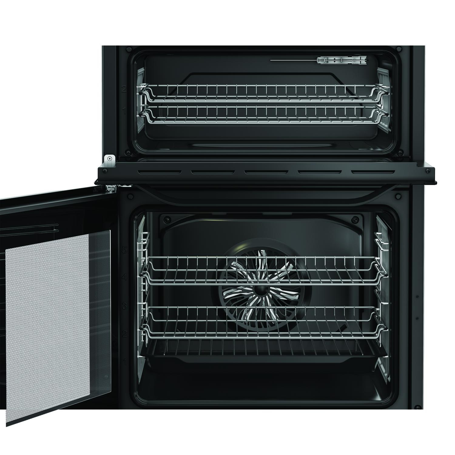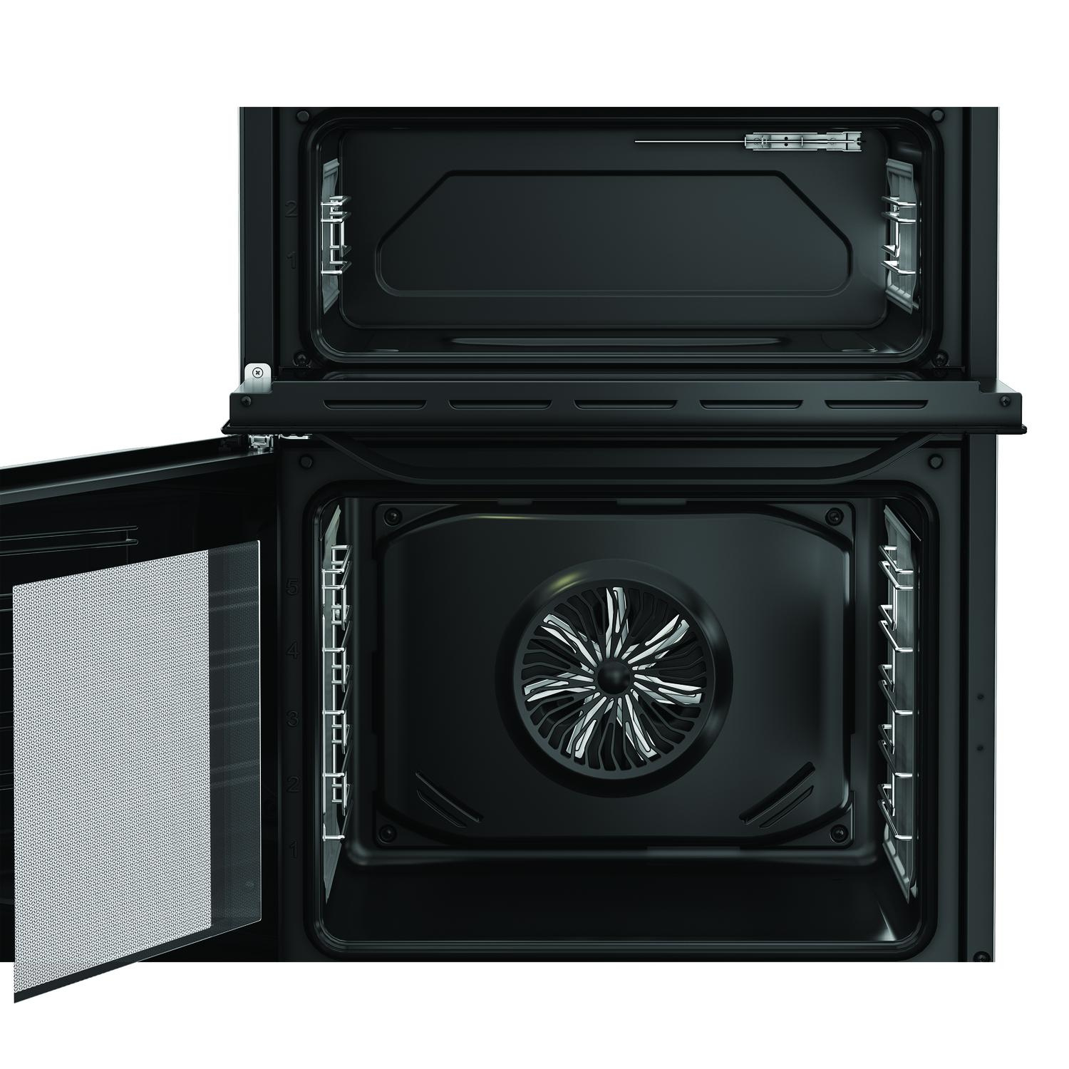 Discover the practical advantages of the Hotpoint HDE6VDC2B1 60cm Double Oven Electric Cooker, designed to be a reliable partner in your kitchen. With its advanced Multiflow technology, this cooker guarantees that heat is distributed evenly across both ovens, ensuring that your dishes are cooked to perfection every time, whether you're preparing a sumptuous roast or delicate pastries.