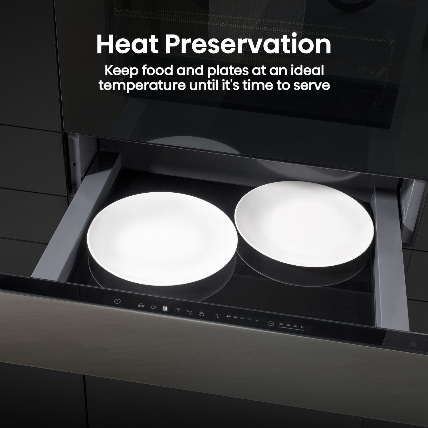 Gone are the days of serving moderately warm food. Up your hosting skills by preheating your plates whilst your food is cooking. Additionally, don't sweat it if you've prepped too early, as the drawer has a keep warm feature which helps to keep food at an ideal temperature of 70˚C until it's time to serve.