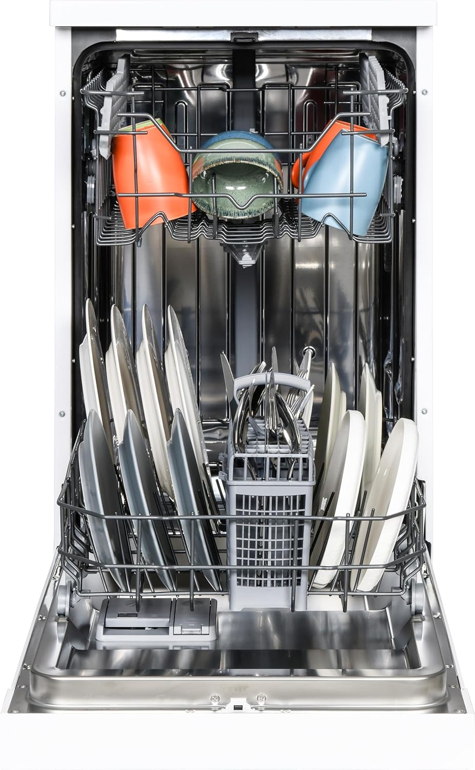 The White Knight AT45FSDW is a compact yet powerful 45cm dishwasher designed for modern living. This efficient appliance combines sophisticated cleaning technology with smart features to deliver exceptional results while fitting perfectly in smaller kitchen spaces.