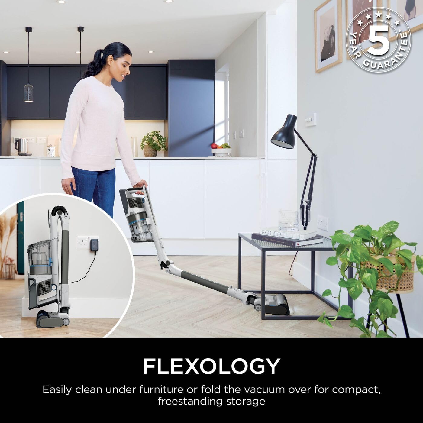 REACH AND STORE ANYWHERE: Flexology allows you to bend the wand to effortlessly clean under furniture or fold it over for compact, freestanding storage. The removable battery means you can plug it in anywhere, for convenient charging.