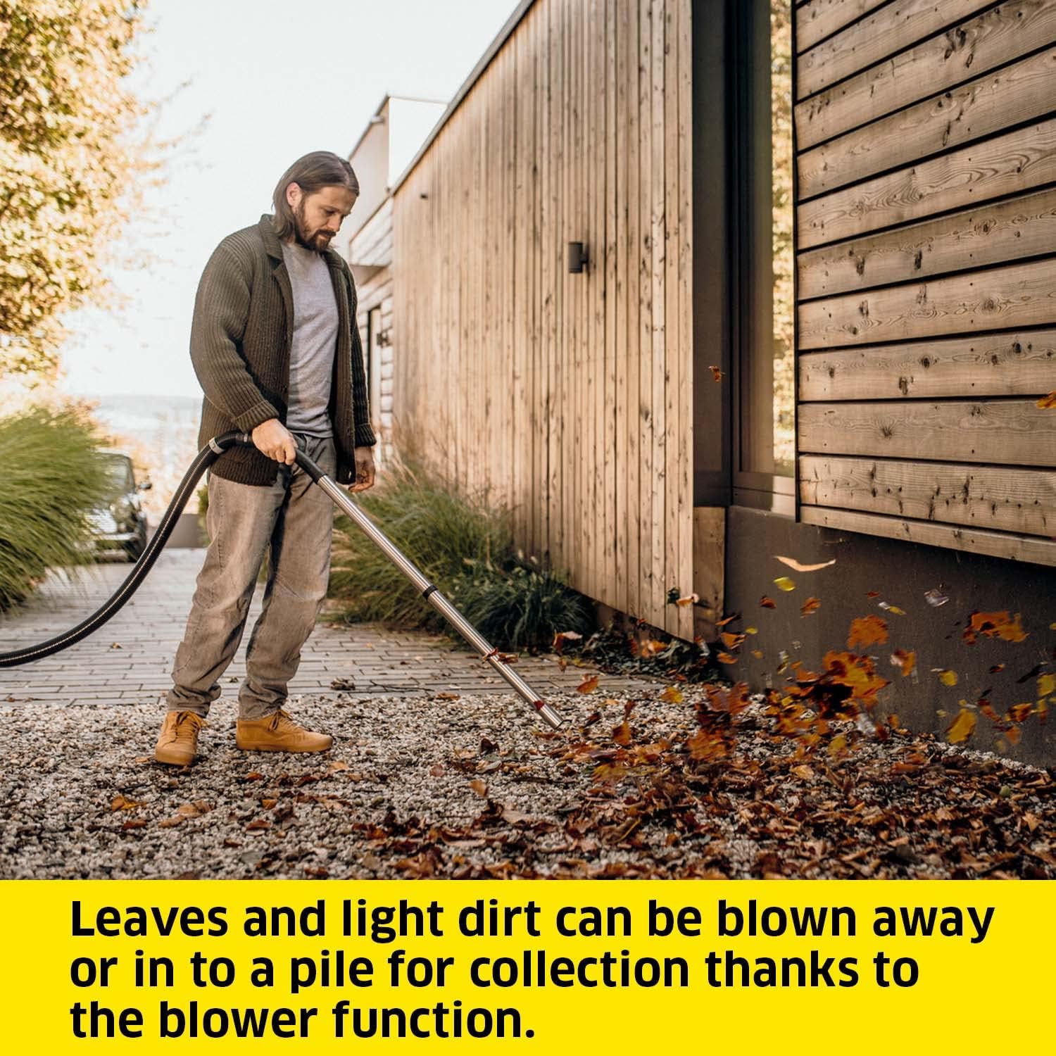 Practical equipment: It has a 12-litre plastic collection container, a 1.8-metre suction hose and storage possibilities for accessories, cables and hose