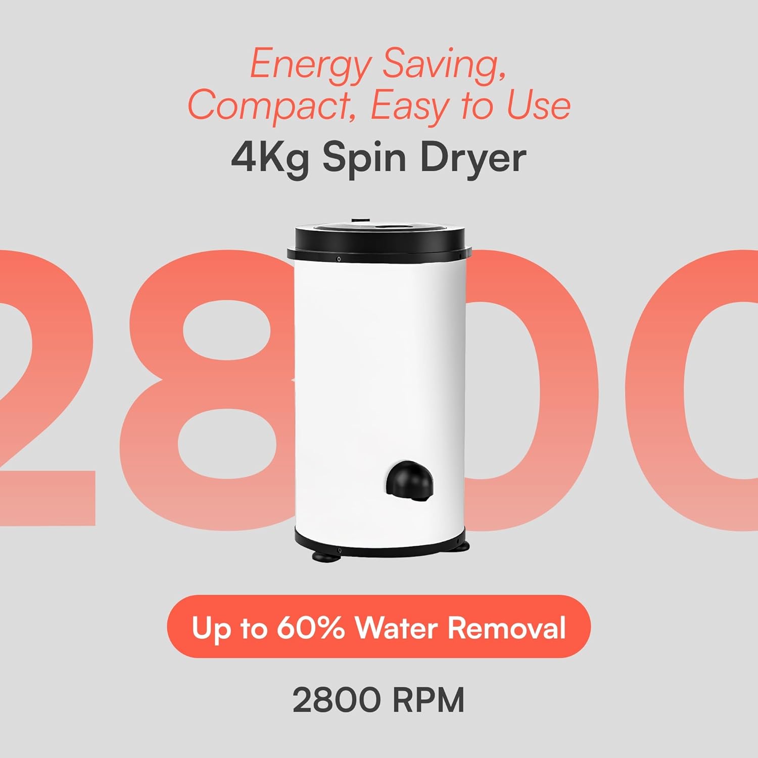 Specification: 4kg Load, 2800rpm Spin Dryer In White