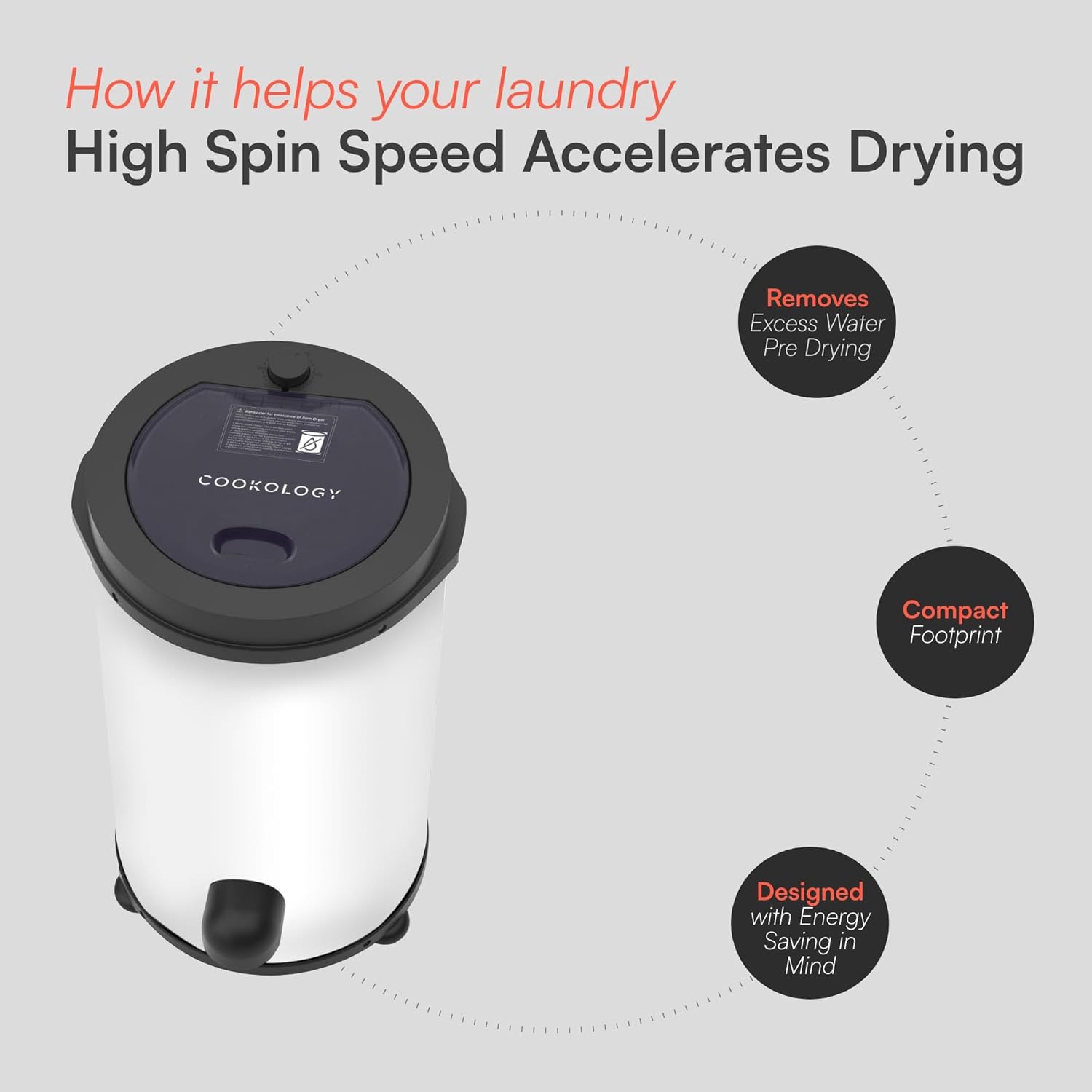 EASY TO USE: This spin dryer is easy and safe to use. Simply place your wet washed clothes into the dryer to speed up the drying process. Our spin machine will fit well into all homes with its compact design that can slot into any kitchen or utility space.