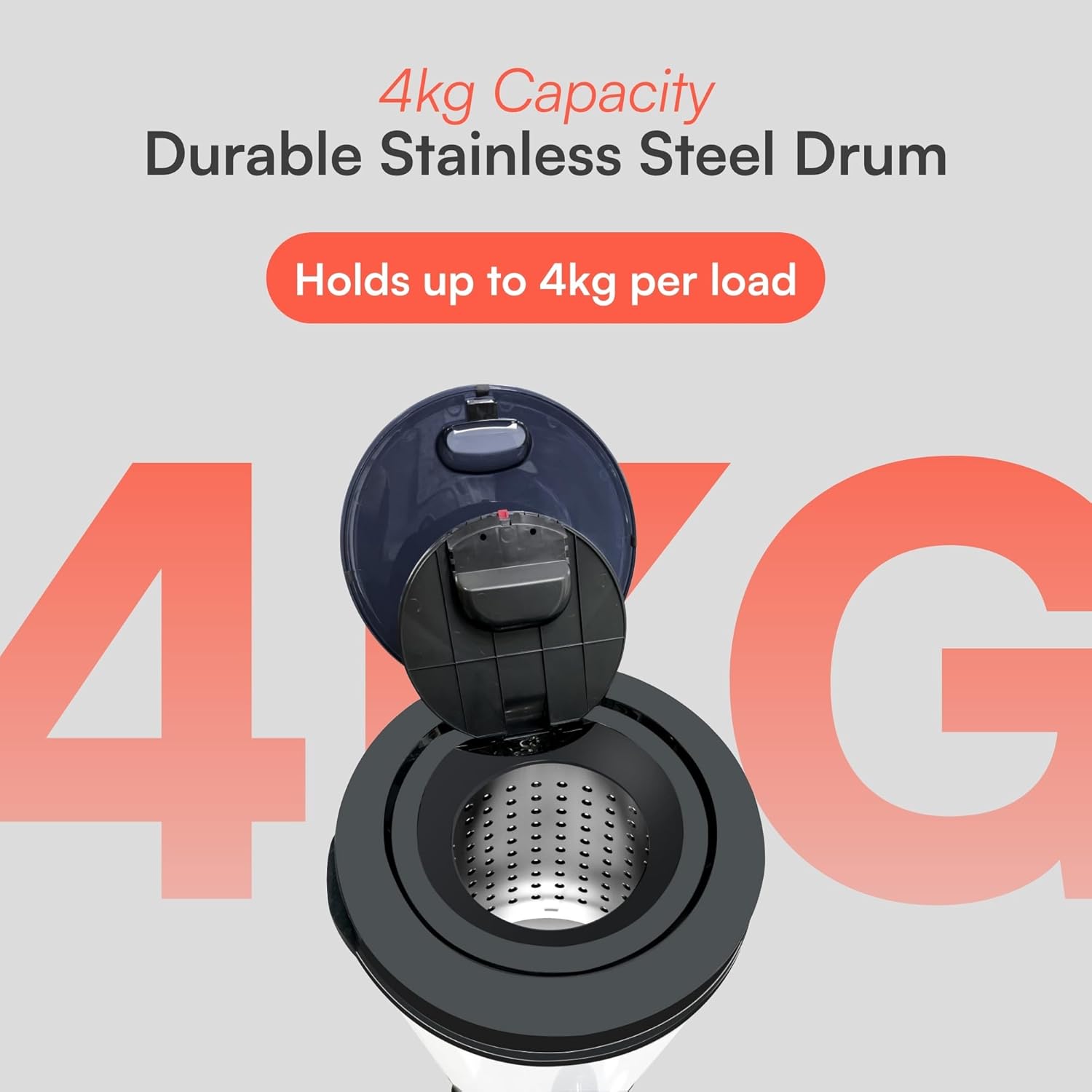 LARGE CAPACITY: This spin dryer has a capacity of 4kg. Made with a stainless steel drum to spin-dry your clothes quickly and efficiently. Ensure your clothes are washed and dry ready for the next day.