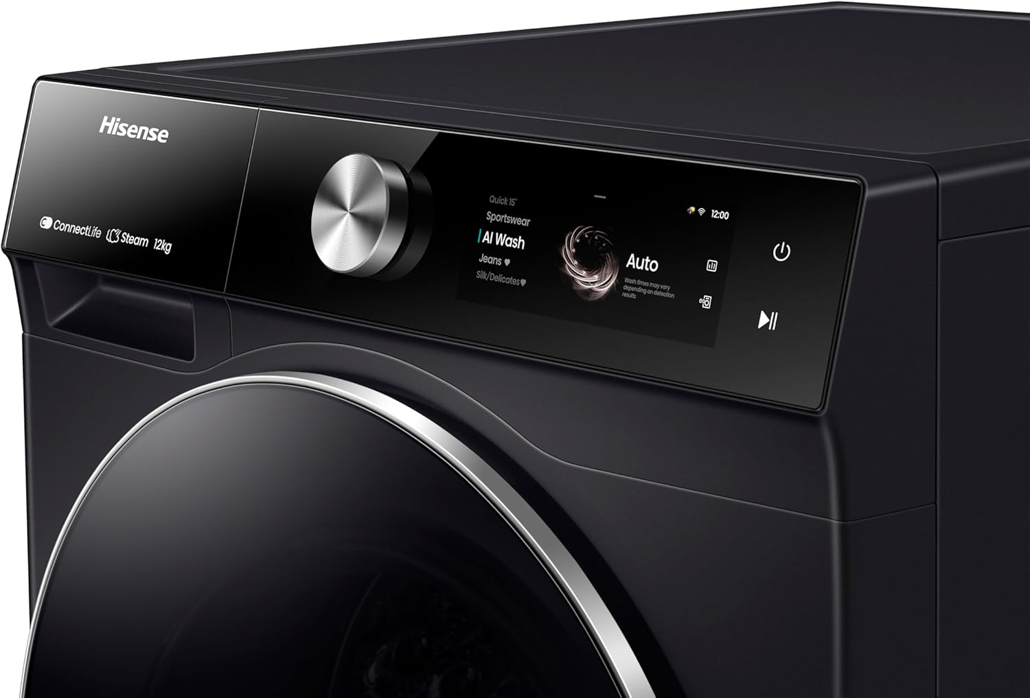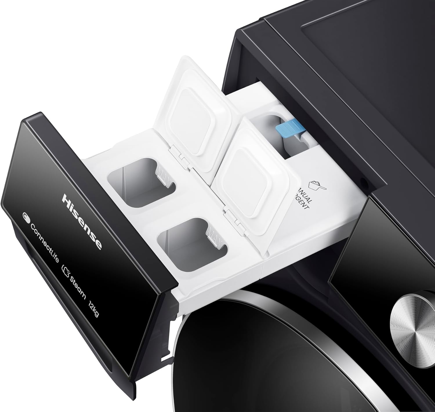 With a variable spin speed of 1400rpm and an impressive 12kg capacity, this black washing machine offers plenty of space to clean clothes, bedding and so much more! With an A energy efficiency rating, the WF7S1247BB features autodosing technology that calculates exactly how much detergent and softener each load needs, dispensing it at the perfect point in the cycle. The detergent box can store up to 24 loads worth at once, helping to reduce wasted product. With 19 wash programmes and 4 additional options (prewash, no spin, add laundry & extra rinse), this washing machine accounts for every situation. In a rush? Select the Quick Wash+ programme and wash a variety of load sizes in as little as 15 minutes! You can set, track and control each wash via a vibrant touch screen display. Powered by an inverter motor, this washing machine remains quiet during use. This is an essential feature if you choose to keep your washing machine in the kitchen.