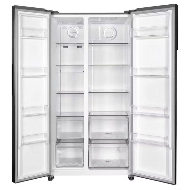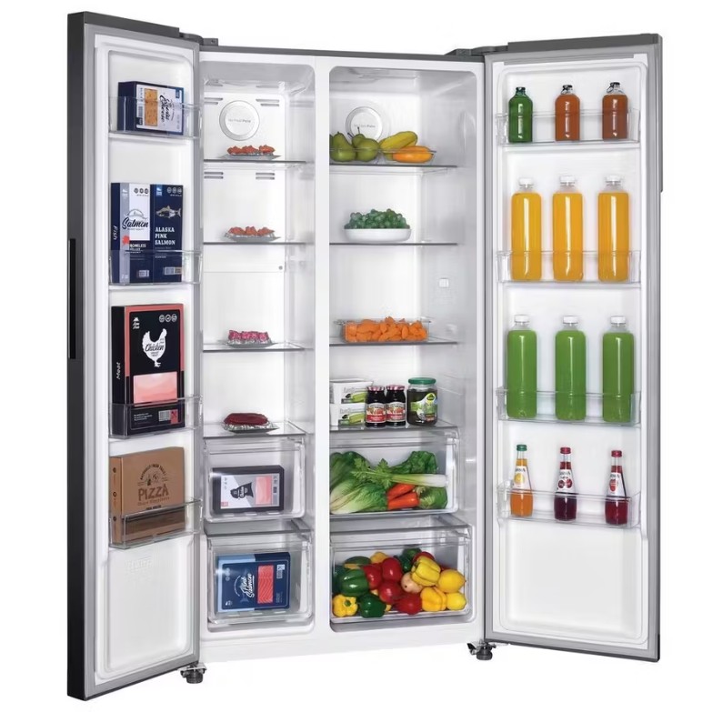 Side-by-Side Design with Maxi Capacity: The H-FRIDGE 500 MAXI offers 521L of space in a side-by-side design, perfect for large households; it provides ample room for both fresh and frozen foods, combining style with efficient storage for bulky items