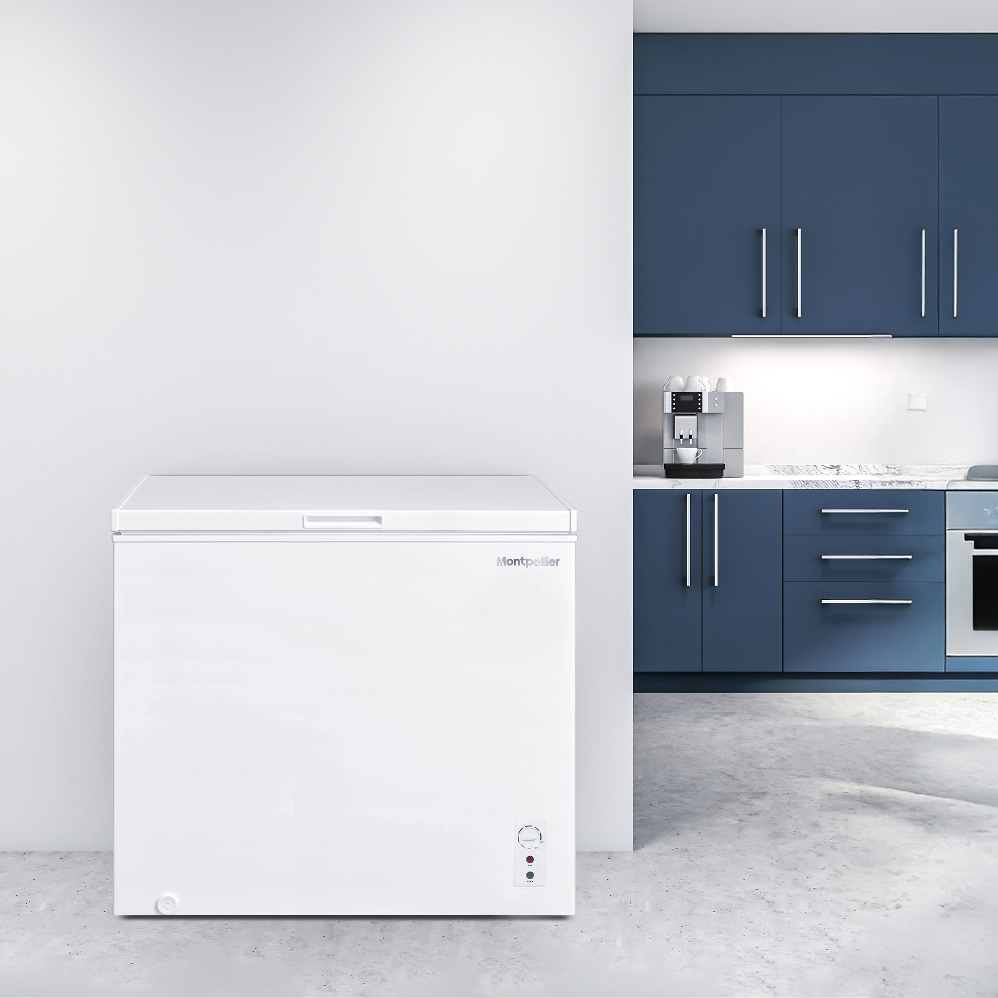 This chest freezer from Montpellier offers 194 litres of storage space and comes complete with a handy storage basket, a counter-balanced lid for safer use, and a wipe-clean interior for easy maintenance.