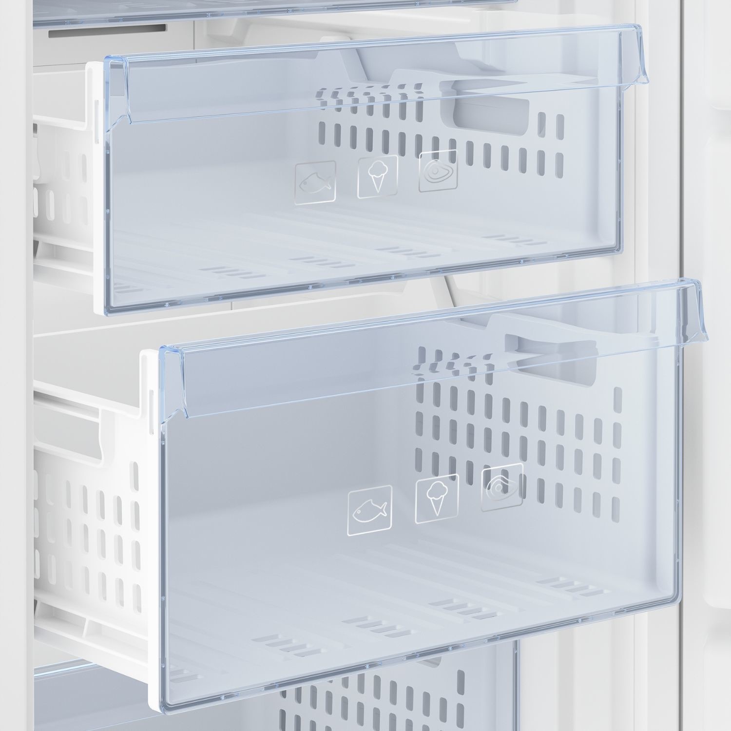 The Beko BFFD4577 Integrated Tall Frost Free Freezer is designed for those who require significant frozen storage. It seamlessly integrates into your home, providing efficient and fast freezing capabilities while ensuring your food's nutrients and vitamins are locked in quickly.