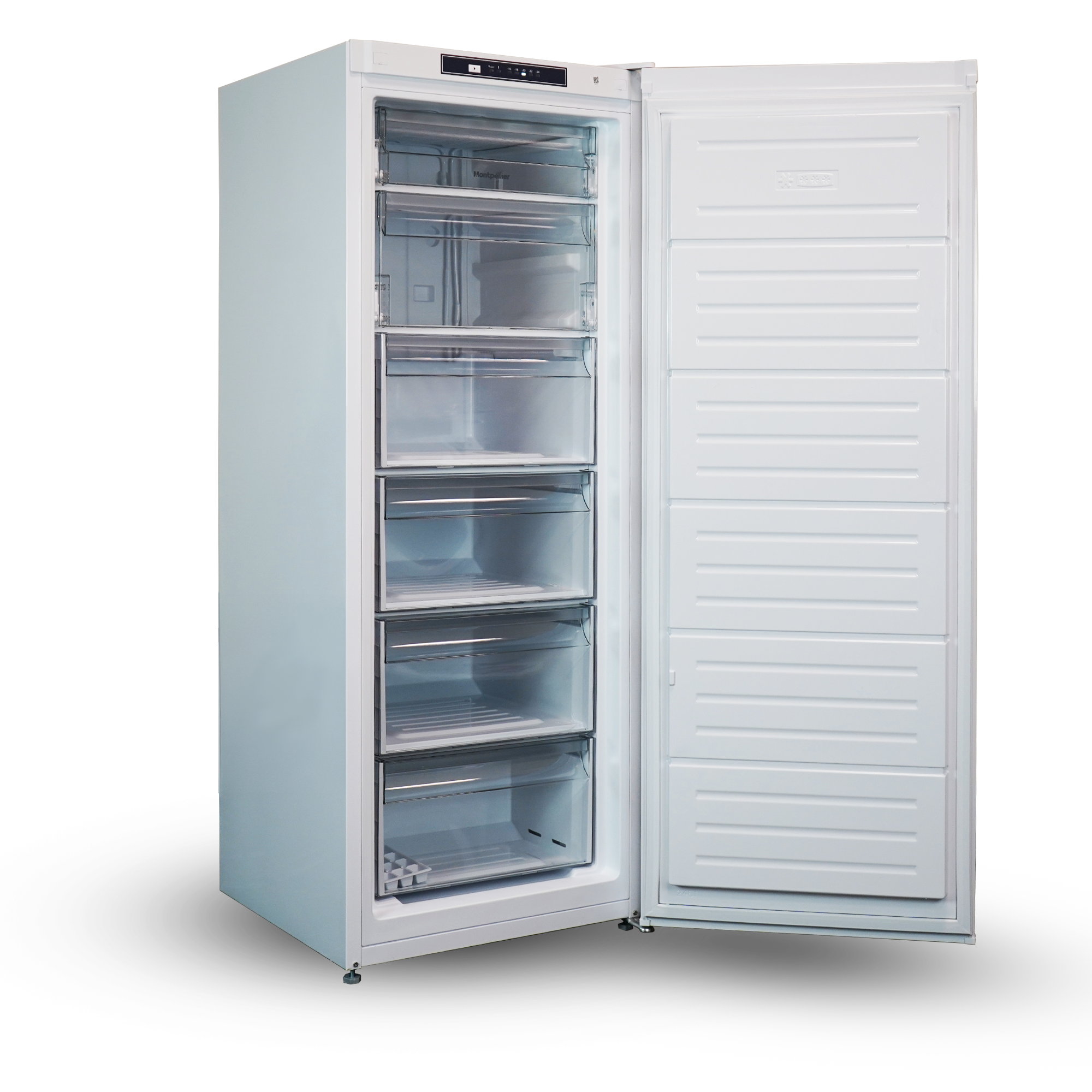 The Montpellier MDATSFZ145W tall, modern freezer offers a generous 188-litre capacity—ideal for larger households or bulk storage. It features seven spacious compartments, easy electronic controls with LED display, and a handy Super Freeze mode to lock in freshness – it’s built for flexibility and peace of mind.