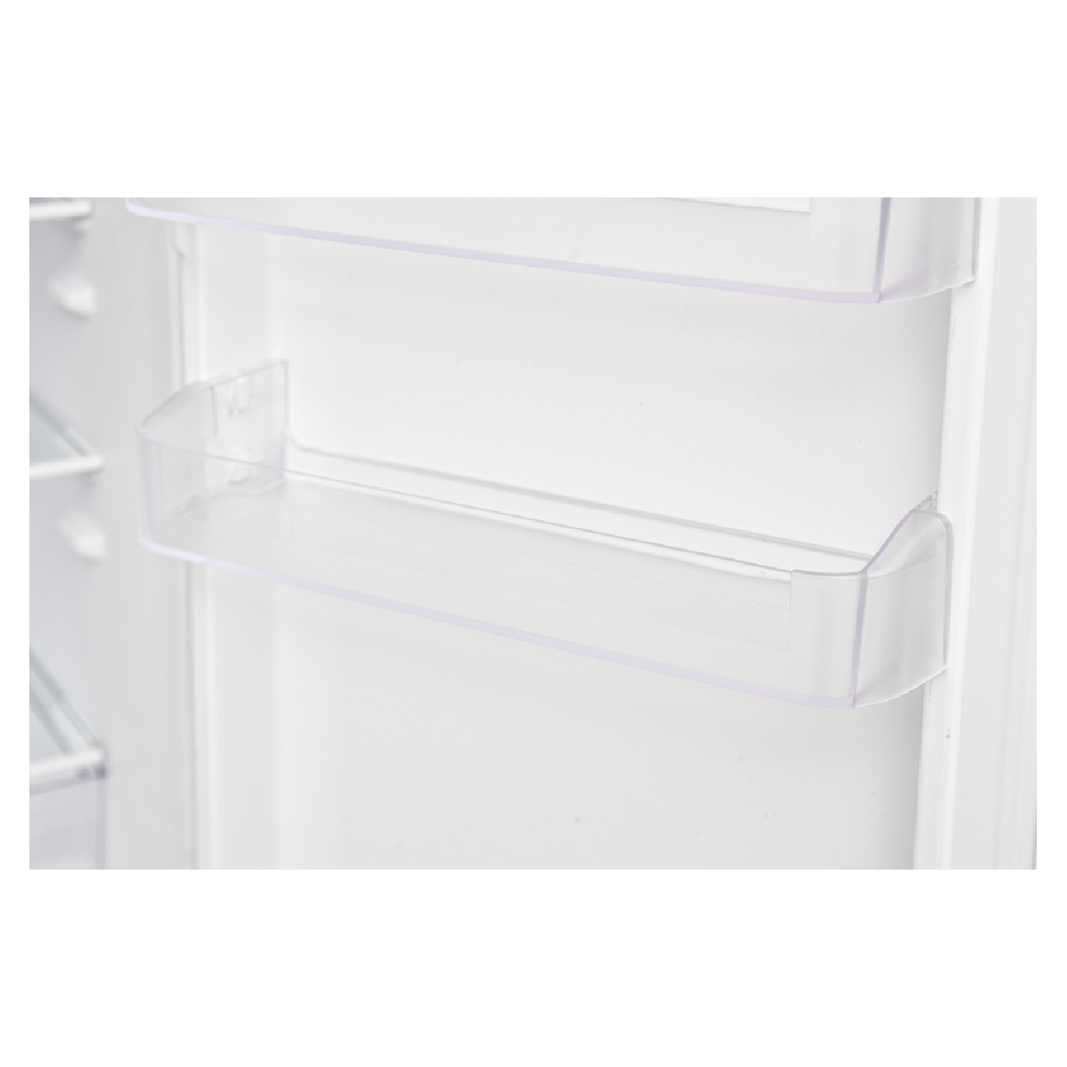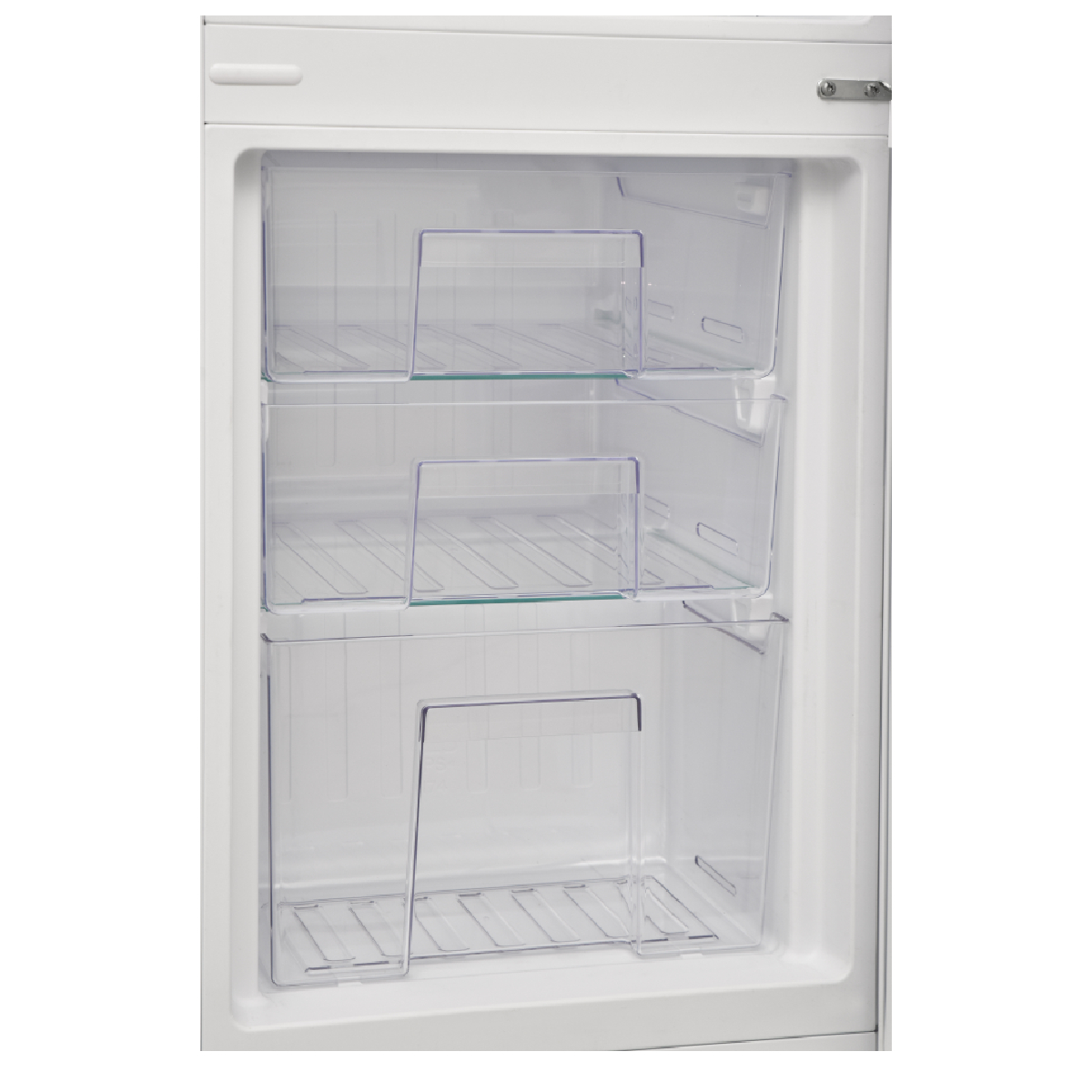 The White Knight AT5048W Less Frost Fridge Freezer in white combines practicality with a sleek design, making it an ideal choice for any kitchen. With its fridge-over-freezer layout, this appliance provides efficient cooling and freezing in a compact and stylish format.
