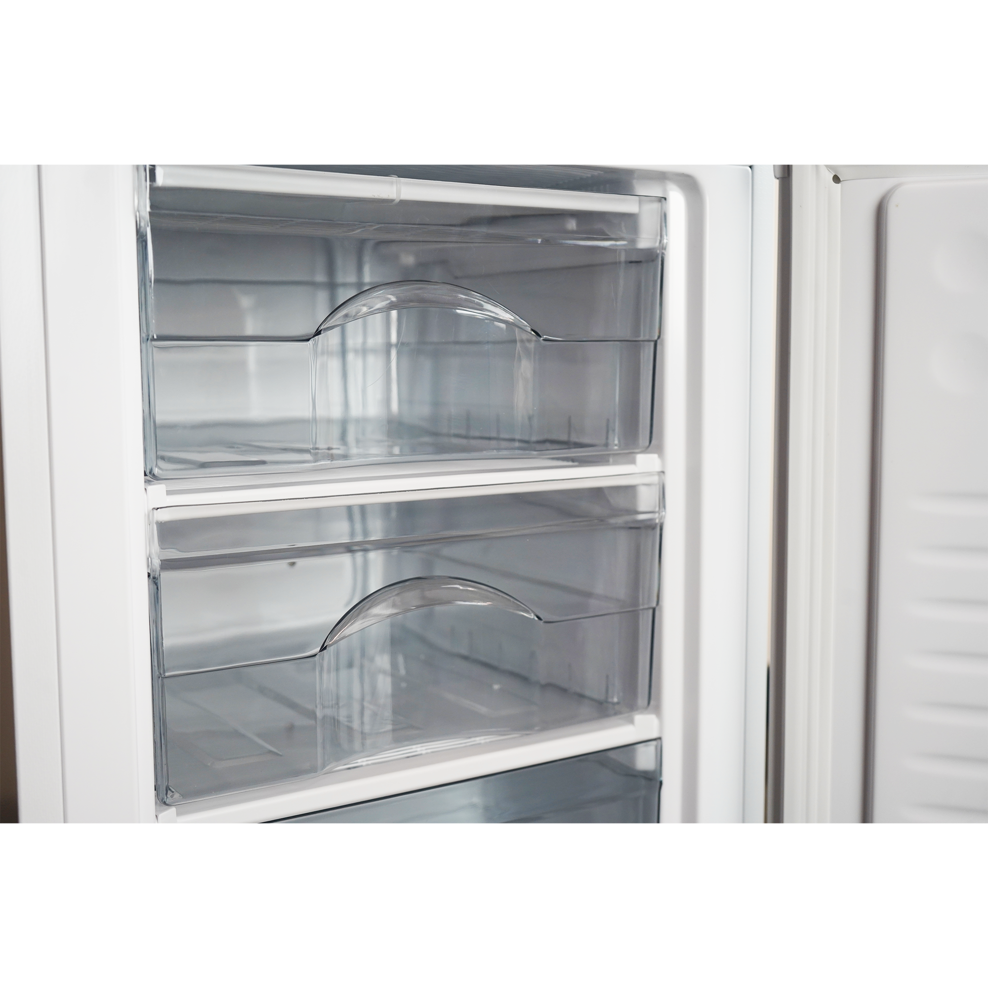 Inside the fridge, you’ll find two adjustable glass shelves to help organise your food easily, along with a salad crisper drawer to keep produce fresh. The three door balconies are perfect for storing bottles, jars, and other everyday items.