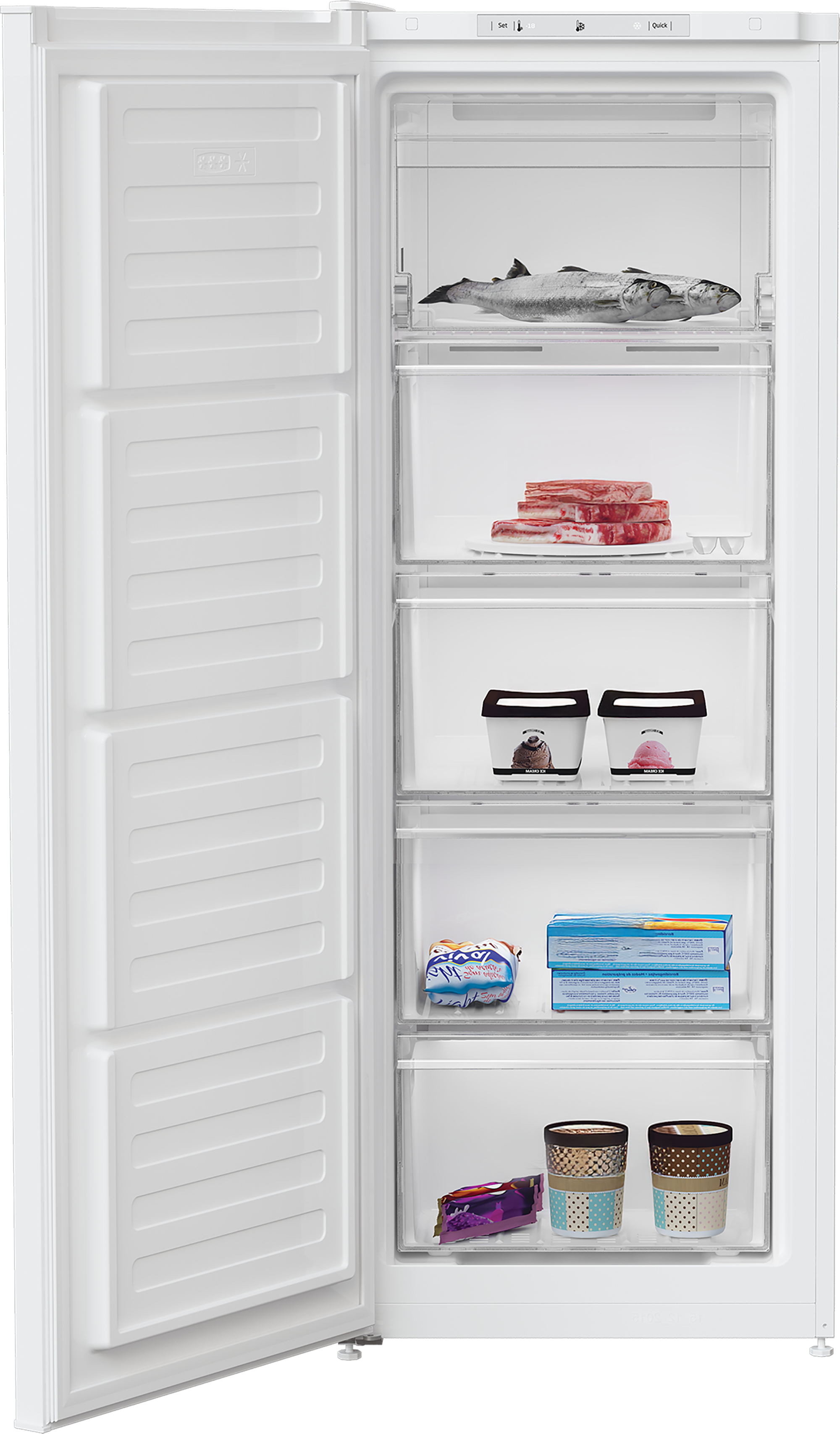 Ideal for households looking for a reliable freezer that operates efficiently in colder environments, the Beko FNE4545W features FreezerGuard technology. This innovative feature ensures proper operation in temperatures as low as -15°C, making it perfect for garages or outbuildings. Ease of use is further enhanced by an internal electronic display that allows users to adjust settings effortlessly, including temperature control, holiday mode, and key lock activation. The fast freeze functionality means you can quickly freeze fresh foods while preserving their nutrients and taste.