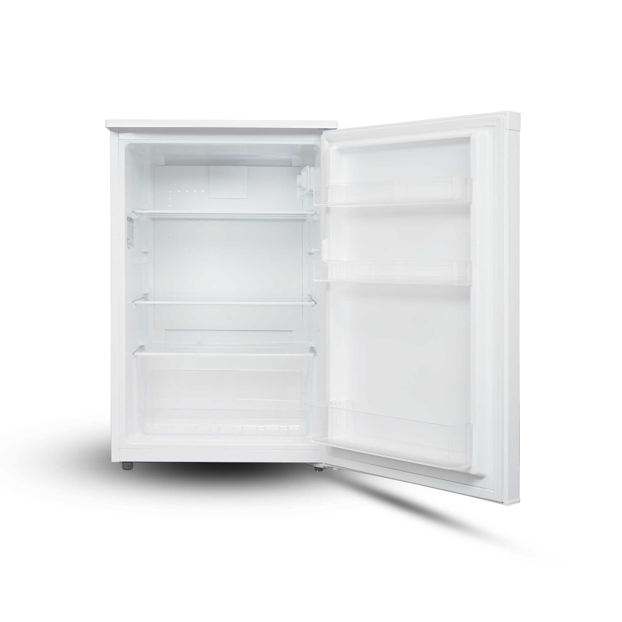 The fridge has a 128 litre capacity and features two adjustable shelves and a salad crisper for extra storage. The door has room for bottles, jars and cartons.