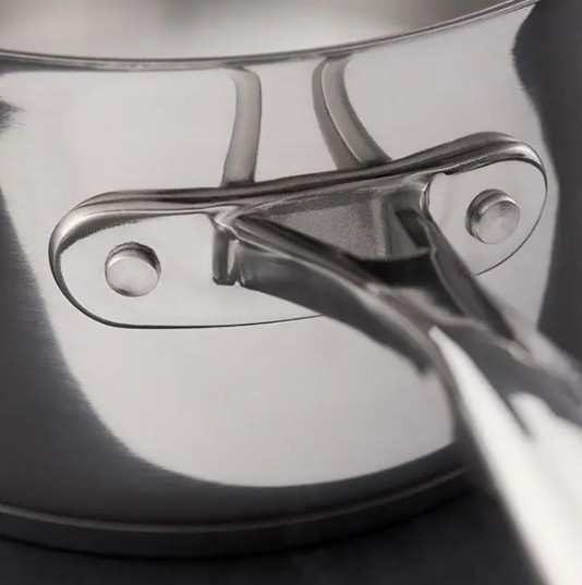 Oven-safe strong cast steel handles and polished steel finish