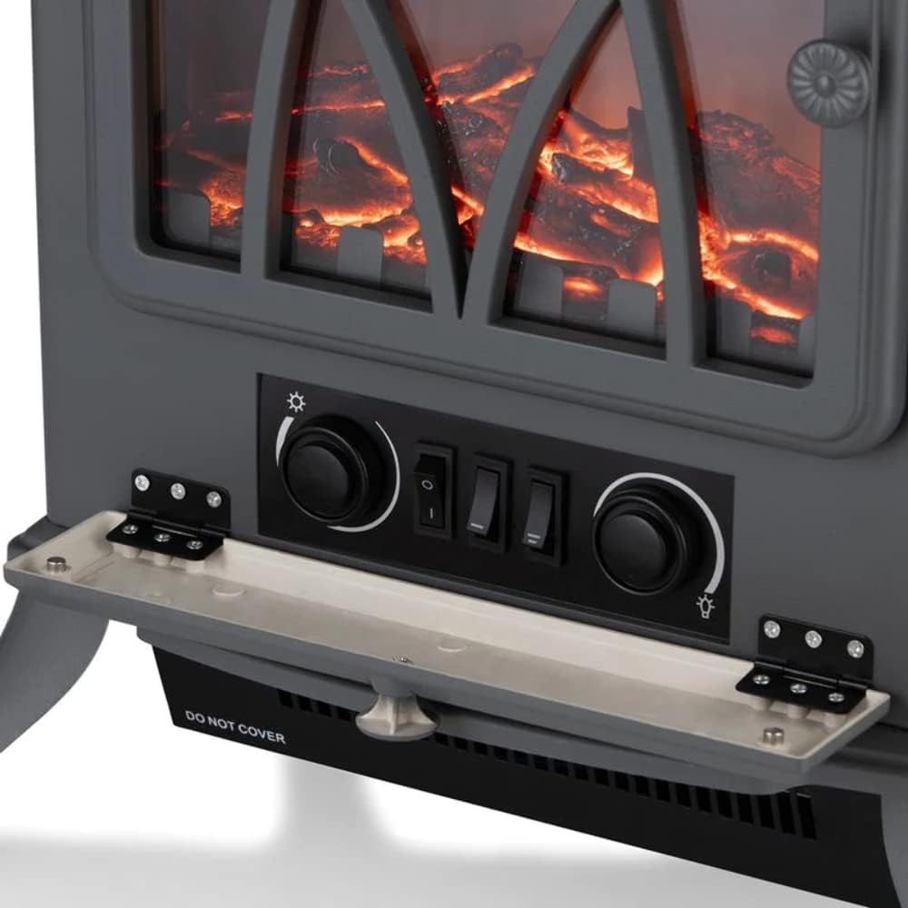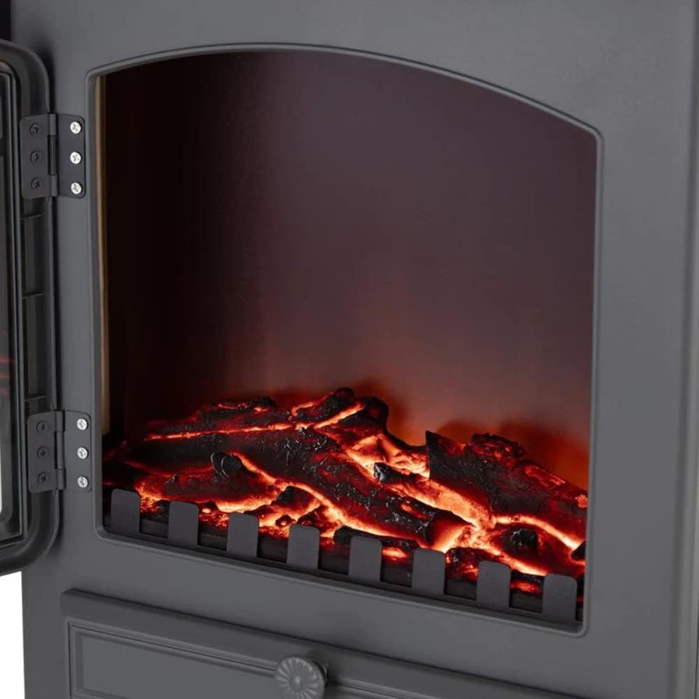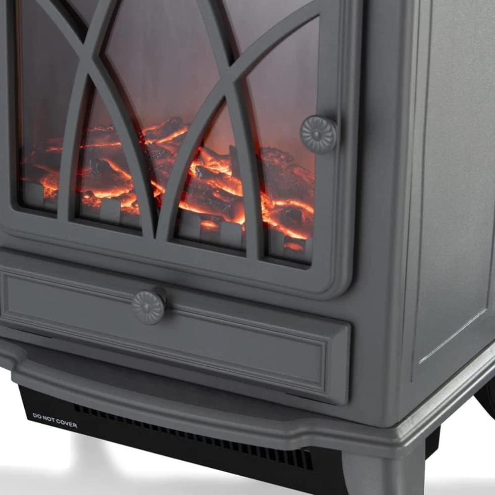 Stirling Electric Fire Stove Heater With LED Flame Effect In Grey