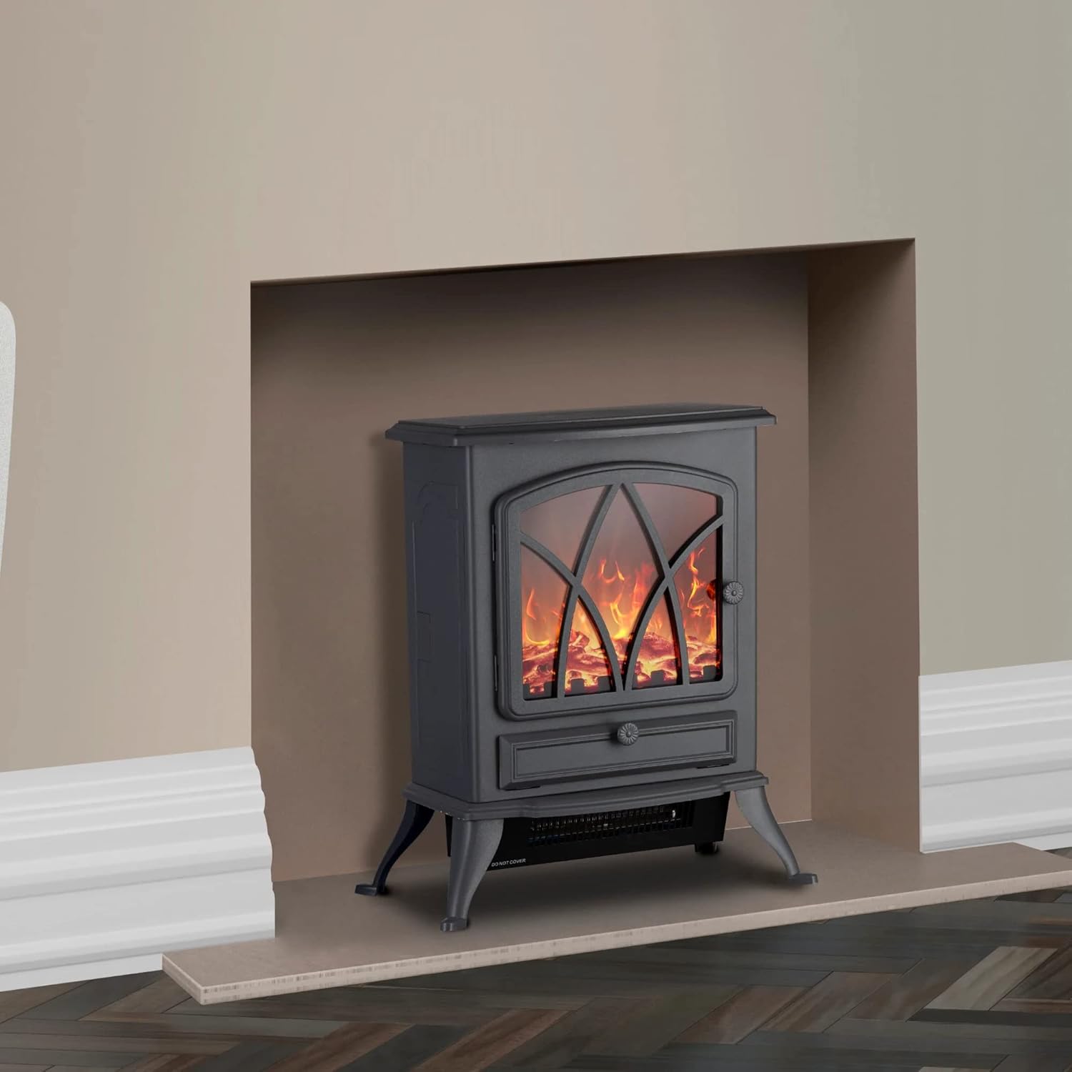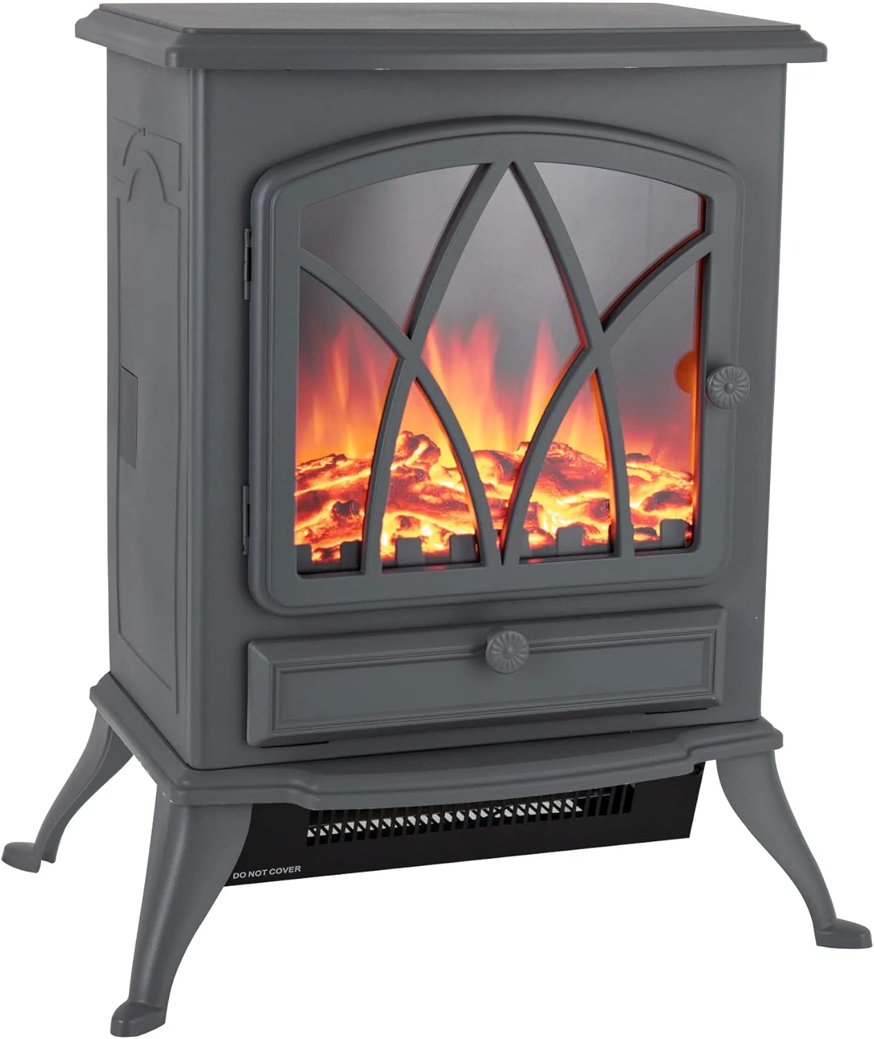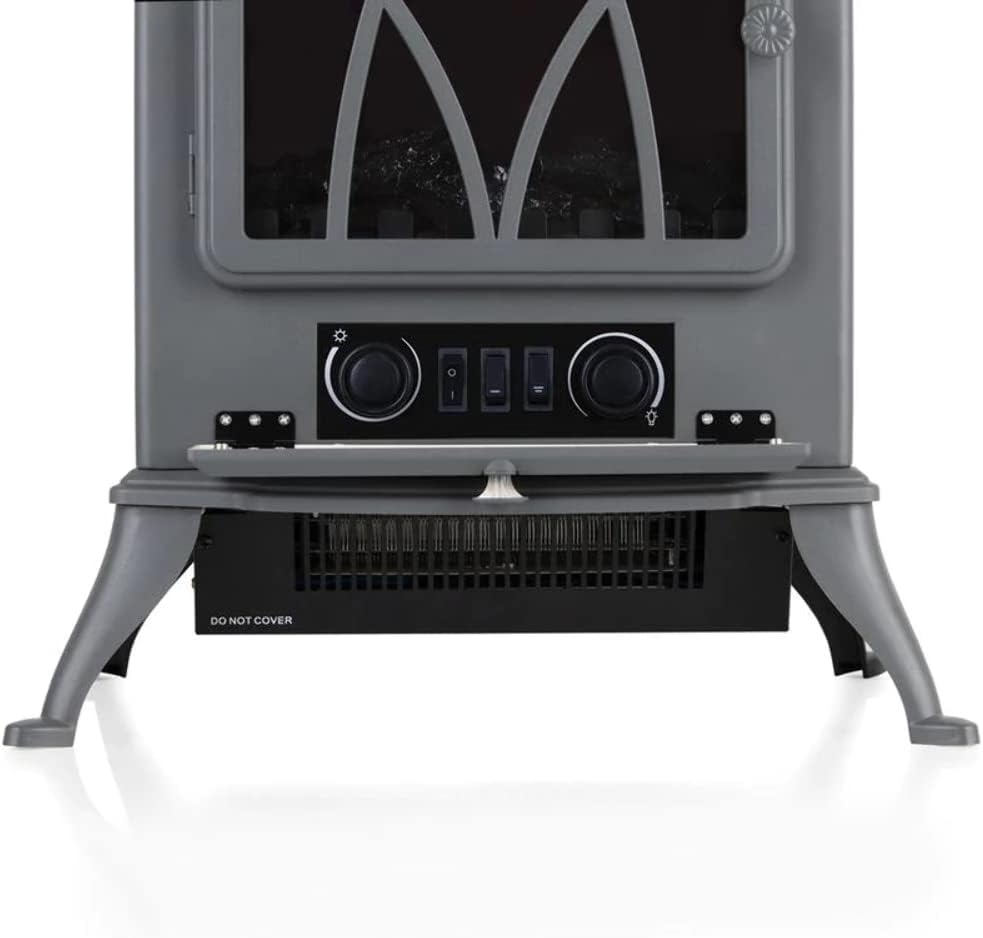 Stirling Electric Fire Stove Heater With LED Flame Effect In Grey