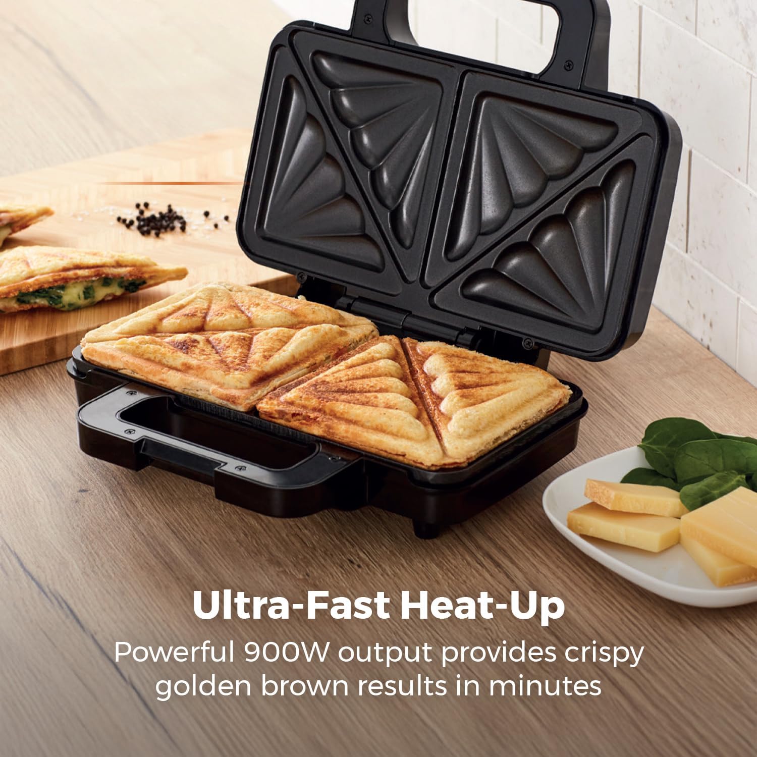 POWERFUL 900W: Provides a fast heat up time, letting you efficiently grill two toasties within minutes