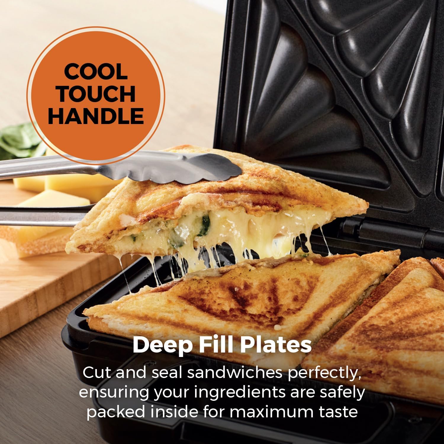 EXTRA-DEEP FILLED PLATES: Pack your sandwich full of flavourful ingredients and create the perfectly sealed snack without the need to flip