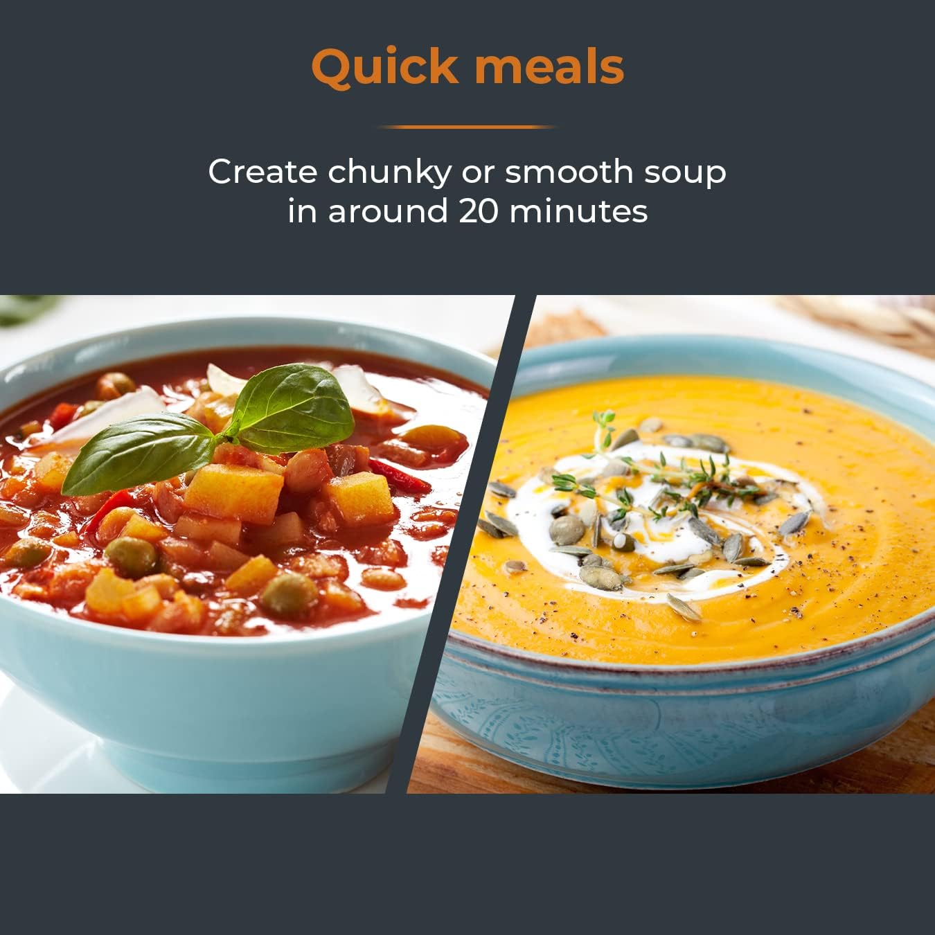 QUICK MEALS: Easily create chunky or smooth soup in around 20 minutes, simply add your choice of ingredients and the soup maker does the rest